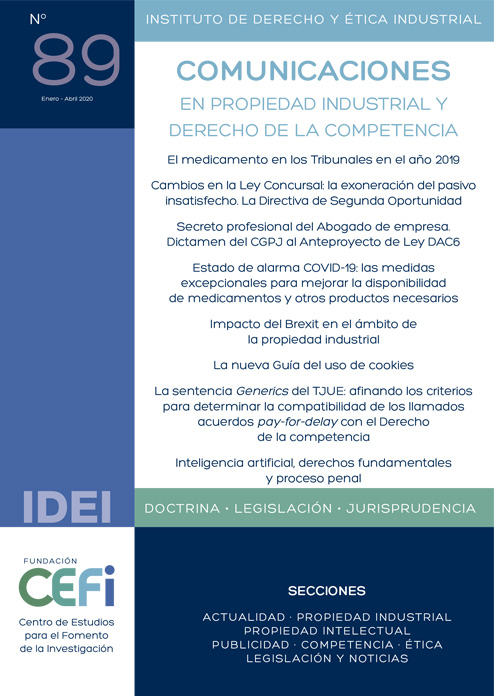Comunicaciones en Propiedad Industrial y Derecho de la Competencia no. 89 (enero-abril 2020) publicado y disponible en la web Índice: Estado de alarma COVID-19: las medidas excepcionales para mejorar la disponibilidad de medicamentos y otros productos necesarios. Teresa Paz-Ares Rodríguez y Beatriz Cocina Arrieta El medicamento en los Tribunales en el año 2019. Jordi Faus, […]